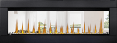 The CLEARion™ Elite See Through Electric Fireplace creates a seamlessly relaxing environment in two rooms.