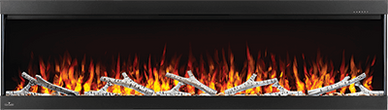 See the fireplace, not the frame with the Alluravision™ Series nearly frameless Linear Electric Fireplaces.